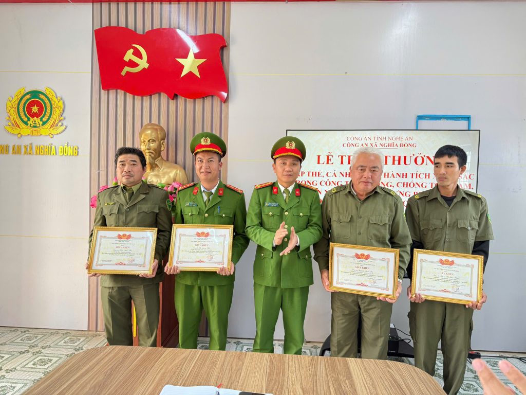 Tại buổi giao ban, chỉ huy Công an xã trao thưởng cho các đ/c đã có thành tích xuất sắc trong phong trào toàn dân bảo vệ ANTQ.